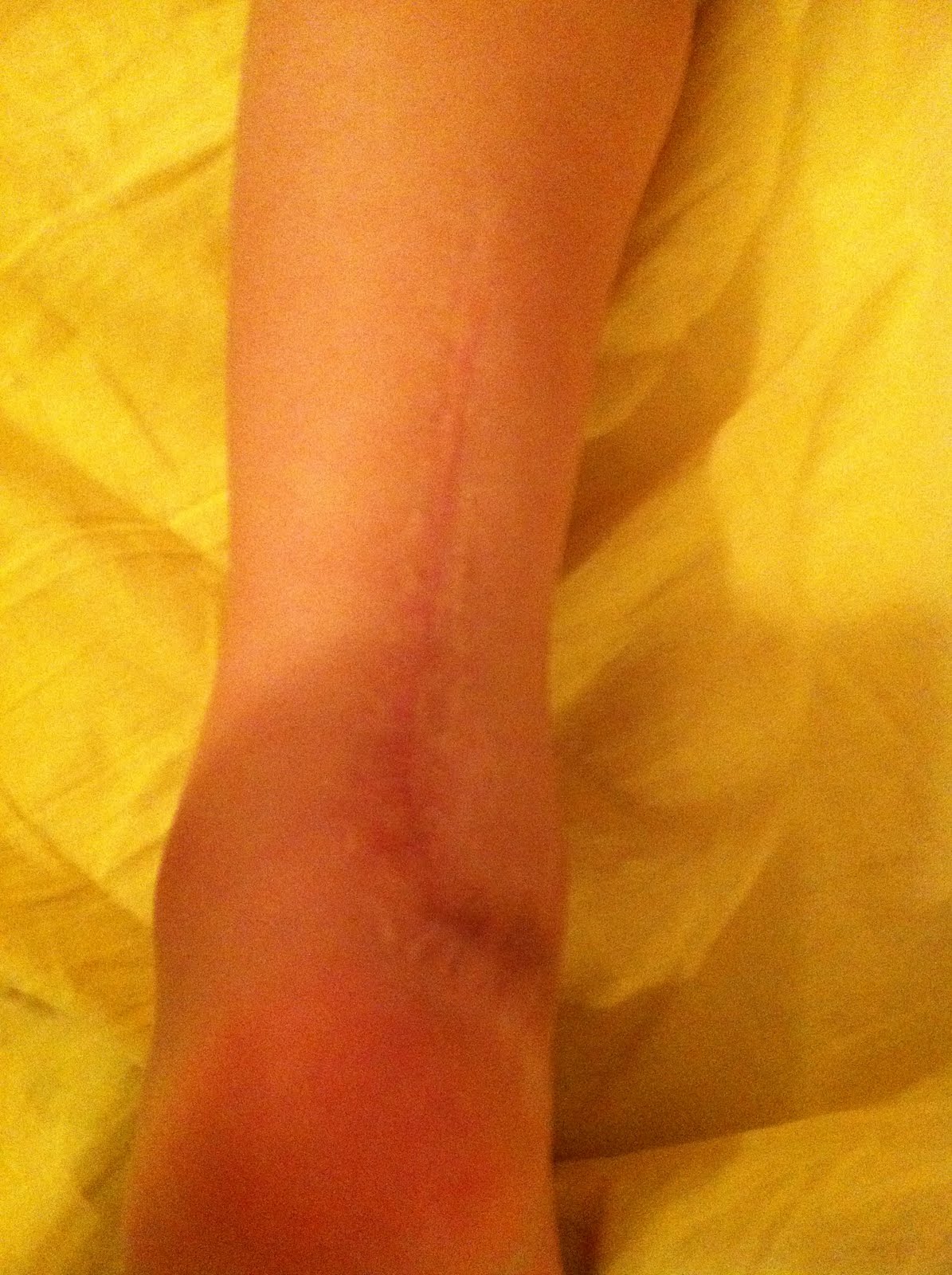 Questa invece è la cicatrice della tenotomia percutanea del metodo Ponseti, praticamente invisibile: